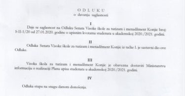 Budite dio IX generacije studenata Visoke škole za turizam i menadžment Konjic! Upis počinje od 15.06.2020. godine za sve studijske programe!