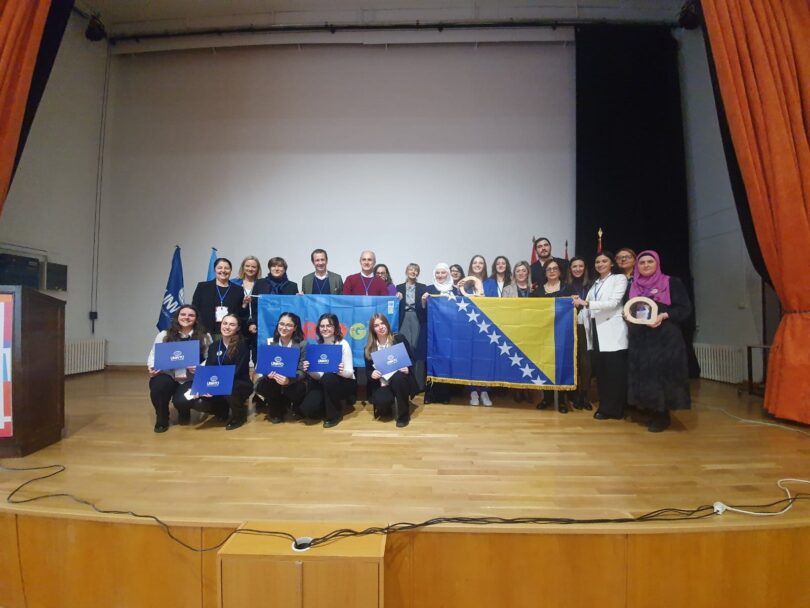 Aktualnosti Šampionke VSTIM Konjic 15.12.2023. Pobjednička zastava u sredstu UNWTO u Madridu. Šampionke su je ponosno raširile!!!