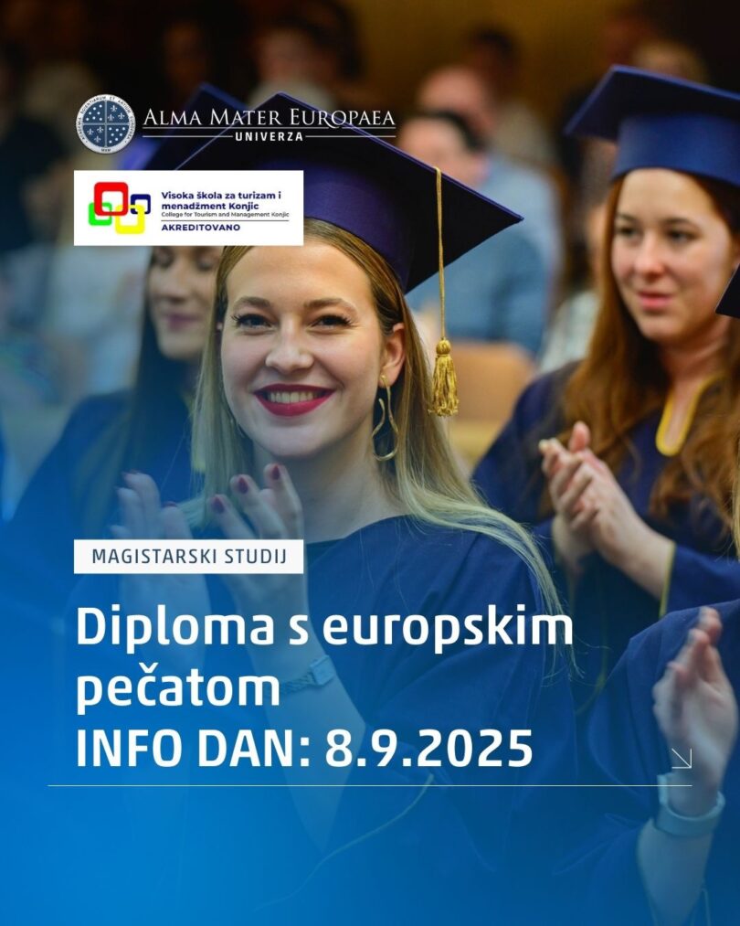 Pozivamo sve zainteresirane kandidate da se prijave na studij, prvog i drugog ciklusa studija, koji se realizira u saradnji sa renomiranim Univerzitetom Alma Mater Europaea, iz Republike Slovenije.